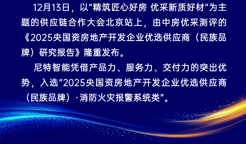 品牌荣誉丨尼特智能入选2025央国资房地产开发企业优选供应商!